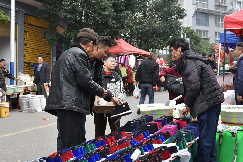 “只有过年的时期,我才能回家与家人团聚。昨天才回到家,今天是赶场,就要买点瓜子、水果、糖果、食品配料等,随便给父母买几件衣服,快快乐乐过新年。”大岩村民方在平在市场挑选货物时说。